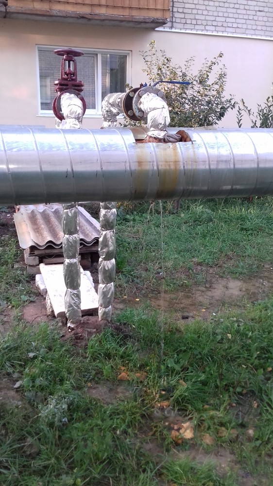 Где чего течёт? Это вот та струйка из теплотрассы? Ха, да есть места где трубы насквозь гнилые, и там дыры, а не игольные ушки, есть вообще разорванные участки, есть неизолированные. Туда и ездит бригада из ЭРУ. Им не до струек. ----------