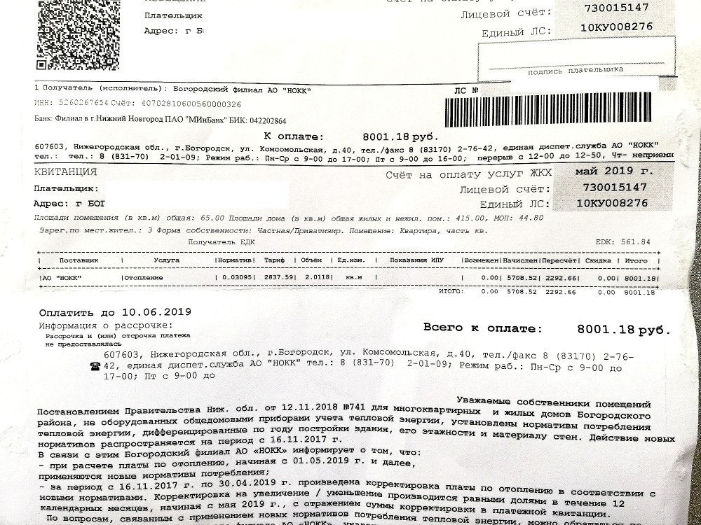 | Кто знает откуда в платежке за отопление такая заоблачная сумма?Что за пересчёт? Они там совсем охренели что ли?Нет отопительного сезона,а денег насчитали в три раза больше!И наверное по телефону ничего не скажут.надо ехать к ним.