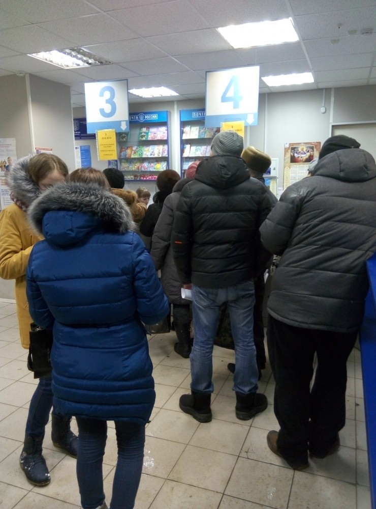 | На почте, чтобы получить посылочку надо отстоять вооот такую очередь из людей, которые платят по квитанцим. Ау, почта, какой твой основной вид деятельности? Кажется уже давно не почтовые услуги.