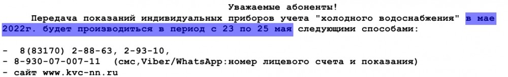 | Уважаемый водоканал, уж определитесь с датой передачи показаний