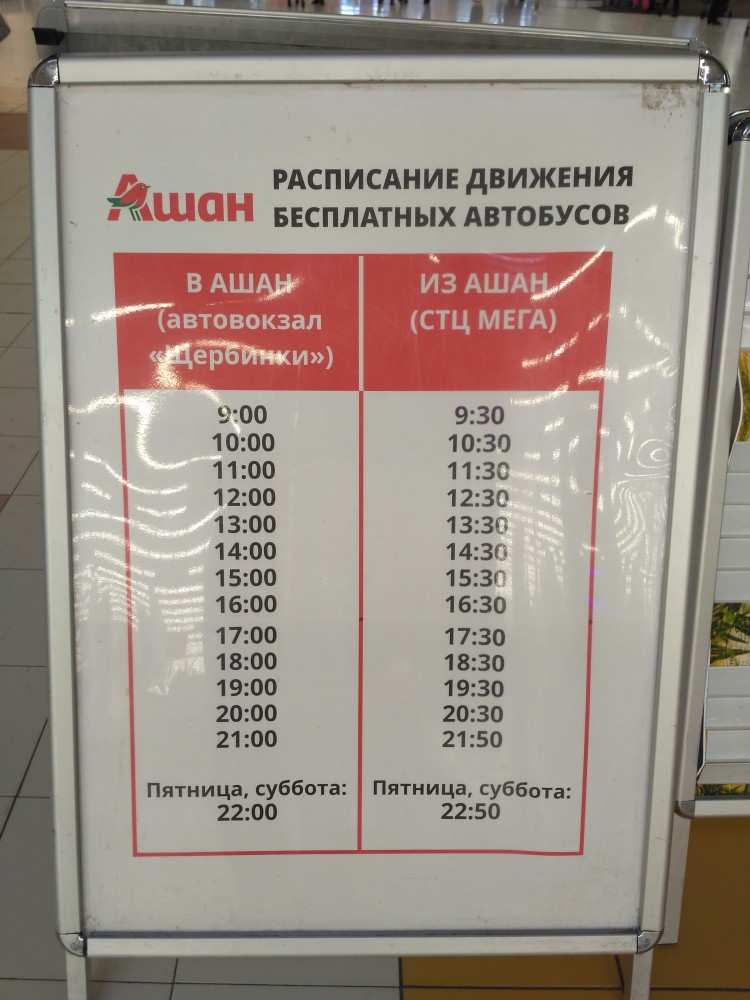 Расписание бесплатных автобусов в Ашан Мега Нижний Новгород