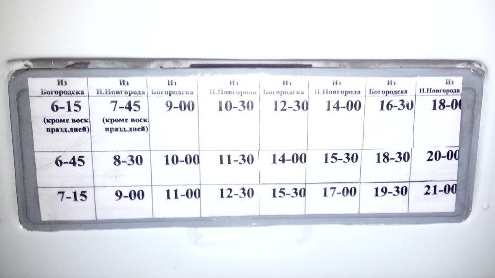 ! Особенно, когда на своих богородских мест не хватает ! Мы стоим на одной ноге, а они сидят... Но с юридической точки зрения никто их выгнать из автобуса не имеет права... может кто-то поспорит, буду только "ЗА" исправления в таблицу с рейсами и телефонами внесла, проверяйте |