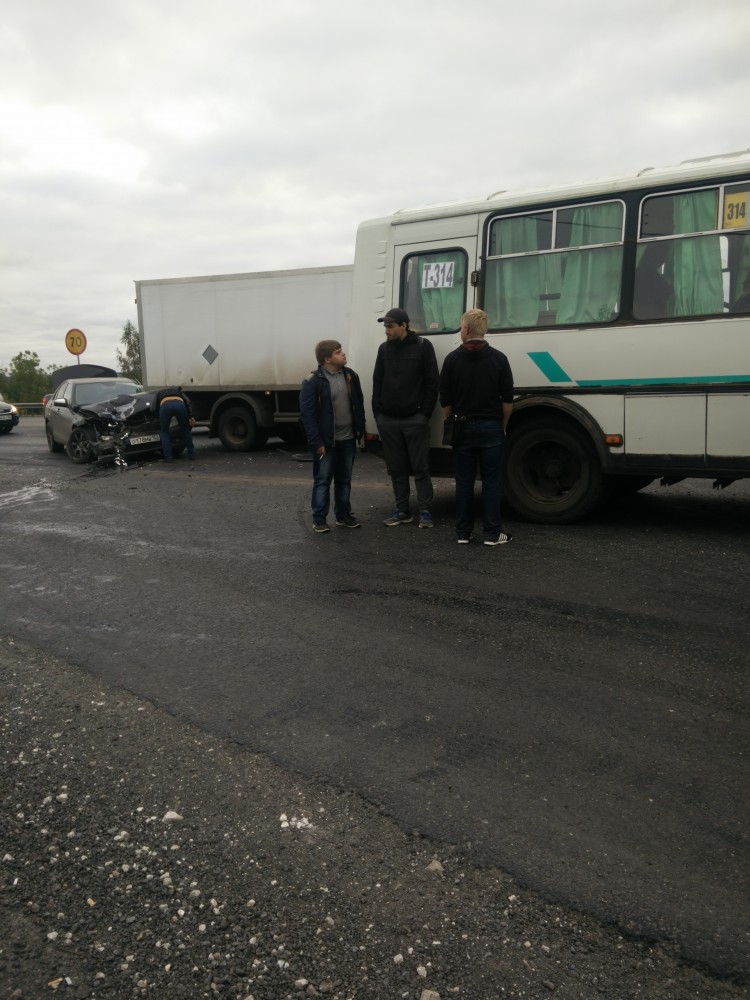 | 15:30 был. Если честно не сильно поняла что произошло,но мы попали на повороте на аэродром. В нас сзади врезалась ещё легковушка, её грузили в 7 примерно на эвакуатор , а в неё врезаламь сзади фура.