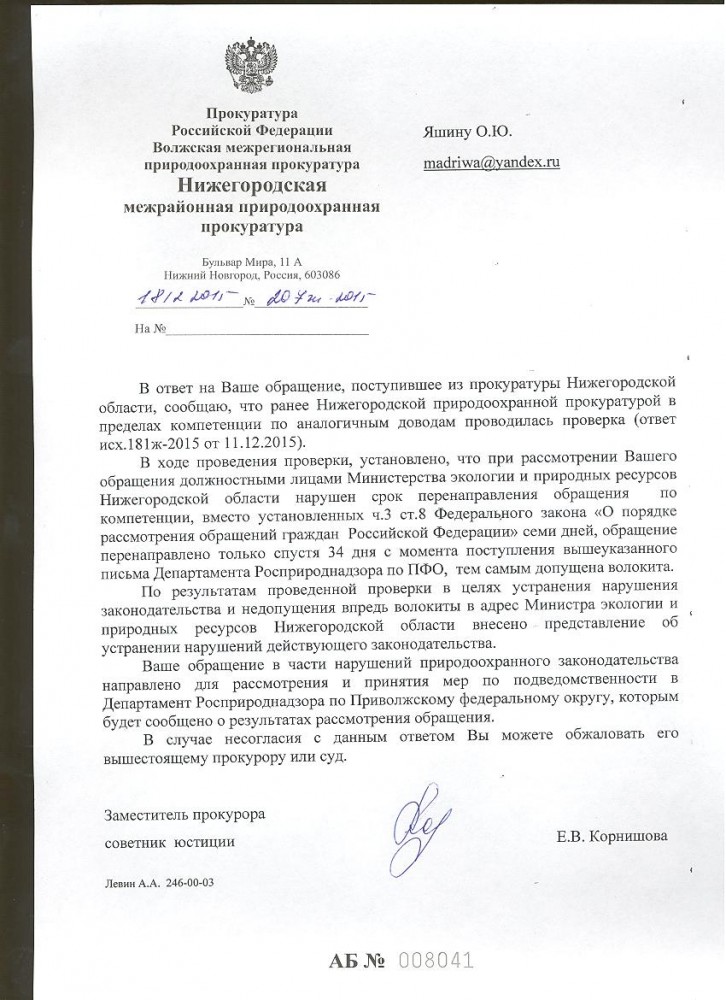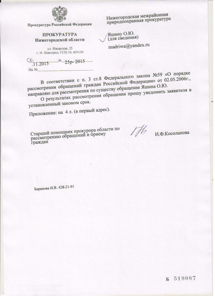 Добрый вечер всем! Ну и бюрократия в нашей стране, природоохранная прокуратура отпихнулась от этой проблемы. А для чего же она нужна данная прокуратура?!