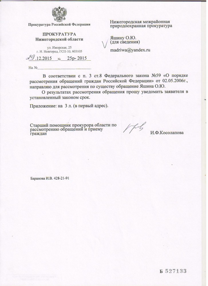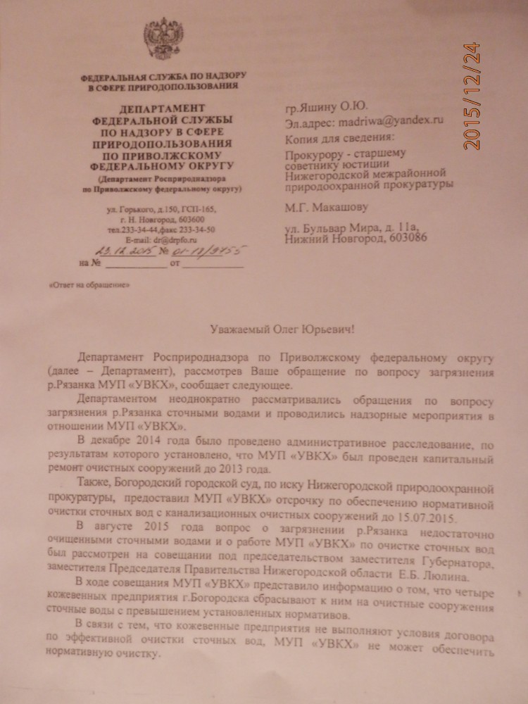 Добрый вечер всем ! Ответ Министерство экологии по Нижегородской области.