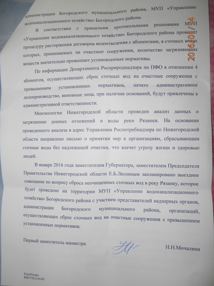 Добрый вечер всем ! Сейчас по России 1 Нижний Новгород говорили про реку Рязанка ! Сказали, что во всём виноваты 4-е кожевенных завода, языком поболтали, решили встретиться позже и всё !!! Друзья пишите в прокуратуру города Богородска, это была отписка нам жителям города Богородска! Ссылайтесь на ст. 42 Конституции РФ.