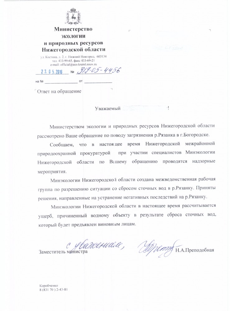 На протяжение многих лет различные организации Богородска сбрасывают канализационные воды и отходы производства в реку Рязанка. В местах, где протекает река Рязанка, а также на объездной дороге Павлово - Н. Новгород стоит невыносимый запах. Данная река Рязанка впадает в реку Кудьма, которая протекая по Кстовскому району, втекает непосредственно в гордость нашей Родины реку Волга! Все об этом знают (в том числе и Департамент Росприроднадзора по Приволжскому федеральному округу), но сбросы продолжаются с нарушением. Мы желаем изменить ситуацию! Петиция на change.org на загрязнение реки Рязанки Жалобы можно оставлять в следующие организации: