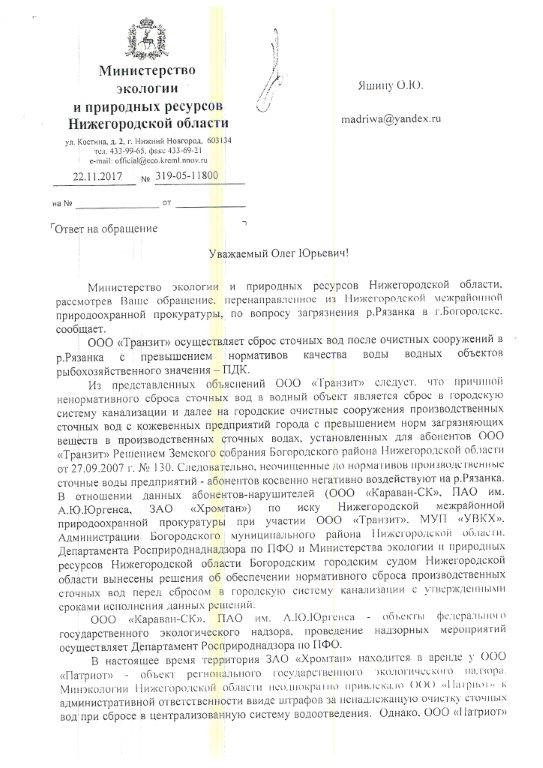 Доброе утро всем. Ответ Министерство экологии Нижегородской области по нашим заводам !!!