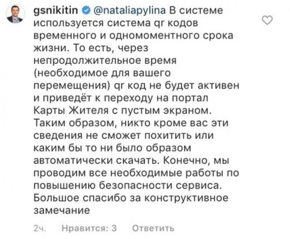 Резвяков АН написал: Конечно, много вариантов, только не «личный». Давайте я поясню как работает система. Я думаю ни для кого не секрет, что QR-код может считать кто угодно, на любом смартфоне. Как правило, на всех современных смартфонах уже предустановлена программа для считывания QR-кодов. QR-код с сайта nn-card.ru — это ничто иное, как зашифрованная ссылка в специальный раздел на портале nn-card. Выглядит эта ссылка следующим образом https://nn-card.ru/policeman-page?covid_token=&id= Ссылка не защищена никаким кодом авторизации или паролем и доступна всем желающим. По этой ссылке отображаются все персональные данные человека: ФИО, адрес проживания, паспорт и т.д. Таким образом, если QR-код будет выложен в интернет, или ссылка с него попадет в поисковики, то все ваши данные могут быть доступны мошенникам. ----------