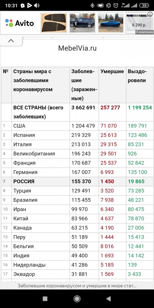 | Я-СЕВА, ну чего ты выделываешься, Вася прав, по динамике мы сейчас обогнали Европу, особенно если учесть, что у них она уже неделю и более, как отрицательная, относительно штатов я уже писал, а они к нам гораздо ближе и по плотности и по населению.