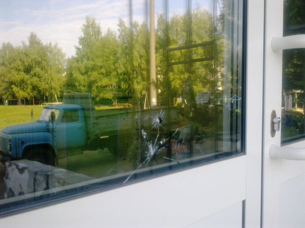 | Вчера ночью около 23 часов трое "байкеров-ушлёпков" стреляли в новые пластиковые двери школы №6 из травматического пистолета!!!
