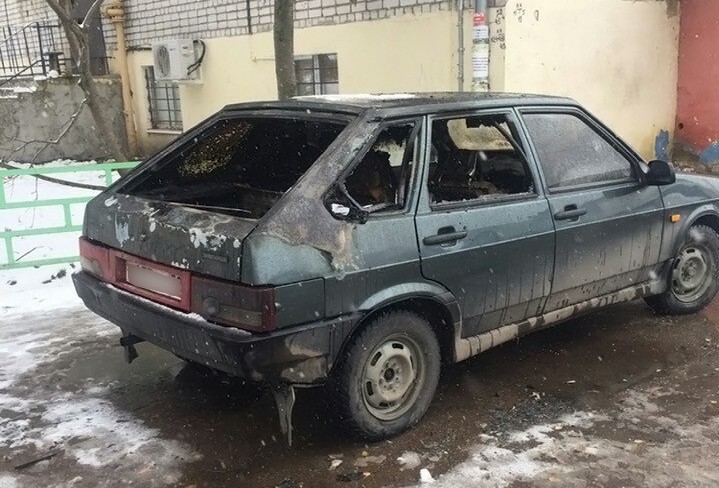 | В ту же ночь подожгли еще ваз 2104 около общежития.