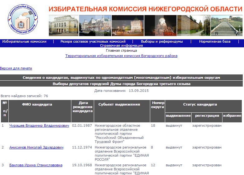 Сведения о кандидатах, выдвинутых по одномандатным (многомандатным) избирательным округам Дата голосования: 13.09.2015 Результаты выборов