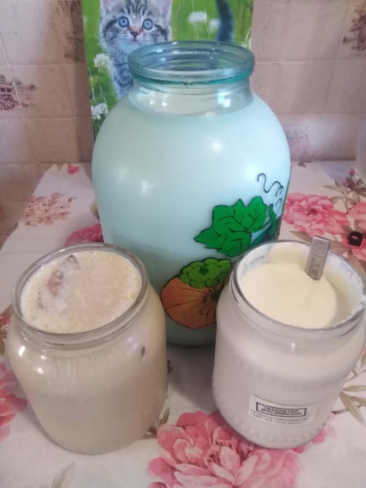 Здравствуйте уважаемые форумчане и форумчанки. В связи с отелом второй коровы, имеются излишки молочных продуктов:топленого молока, творога жирного и обезжиренного,сливок(на фото сливки).