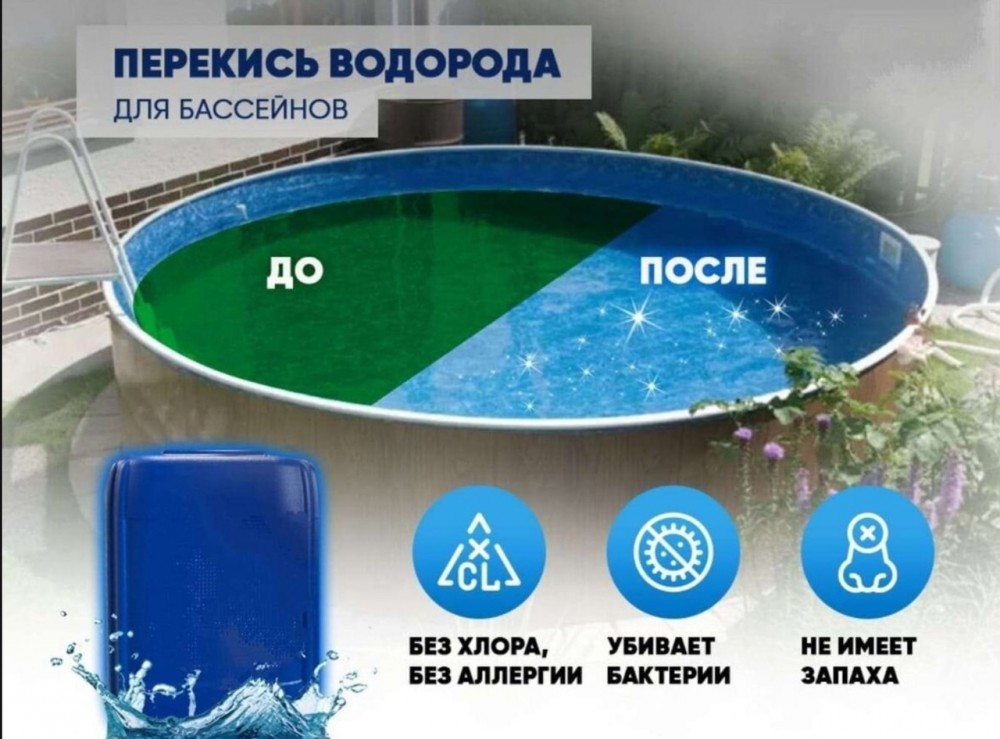 Перекись водорода для очистки воды в бассейне. Заказ в лс и по телефону 8 904 046 40 90