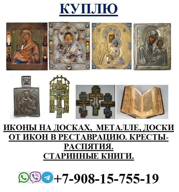 | Свяжитесь с нами, если хотите продать вашу реликвию Бесплатная оценка, покупка предметов старины.Выезд. Иконы, патефоны,фарфоровые статуэтки и многое другое +79081575519 viber/whats app/telegram (для оперативной связи) |