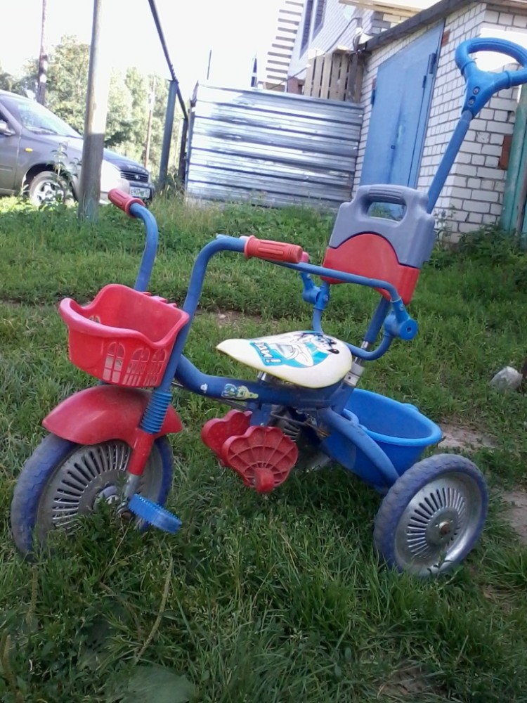 | Отдам за вкусняшку к чаю детям. Детский велосипед(после одного ребенка-братика,у нас свой). Проблемы-нет одного подлокотника, не крутятся педали.Рулевое управление для родителей работает. Два года стоял в гараже, педали возможно просто требуют смазки. 8 902 303 24 12