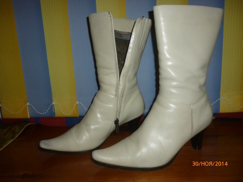 сапоги зимние ECHLE цвет молочный, натуральная кожа, натуральный мех, каблук 5см ЗАБРАЛИ ----------