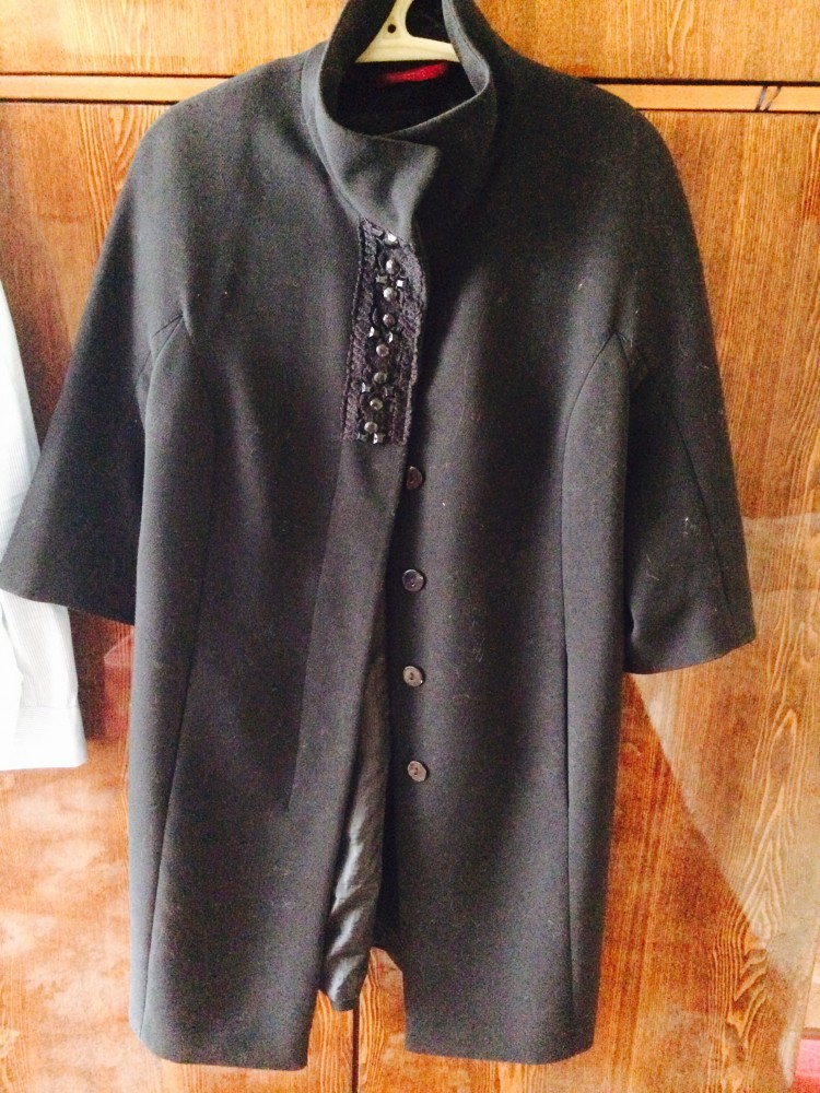 | Черное пальто женское. Размер 48. Рукав 3/4. Качество и состояние хорошее. На более теплую погоду,чем сейчас ️.
