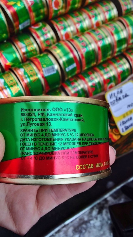 Promontorium07 написал: У универмага стоят, торгуют икрой Да,стояли вчера,18.12.21.Сфотографировал их банку. | |