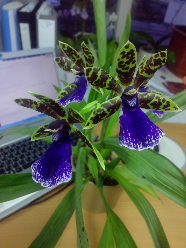 | А у меня на работе "красотка" расцвела. Купила ее не цветущей около 3х лет назад, первый раз зацвела.