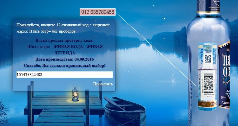| В свете последних событий-отравлений долго не мог выбрать среди разнообразия магазинного алкаголя, купил 5 озер, из-за того что есть банальная акцизная проверялка на сайте, совпал номер и даже дата производства указанная на пробке. У других производителей такой проверки не нашел.