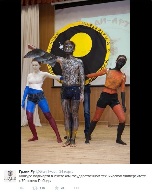 | Журавлев написал: Оффтопик: ... и кстати удали пожалуйста видео с гопником,порочащее память о великой Русской победе! Гопники мелочь. Давно-ли со страшным воем отправили на кичу девчонок, станцевавших на кургане в Новороссийске на траверзе полуруин памятника? Только что наткнулся на странные творения из Ижевска. И особо никто не возмущается. Ни в мэриях, ни в "рядах работников искусства". Не ловят, не сажают. Как всегда, спутали идиотов или провокаторов с новаторами? Гы-гы... Фантазия контуженных. Боди-уроди, короче. ----------