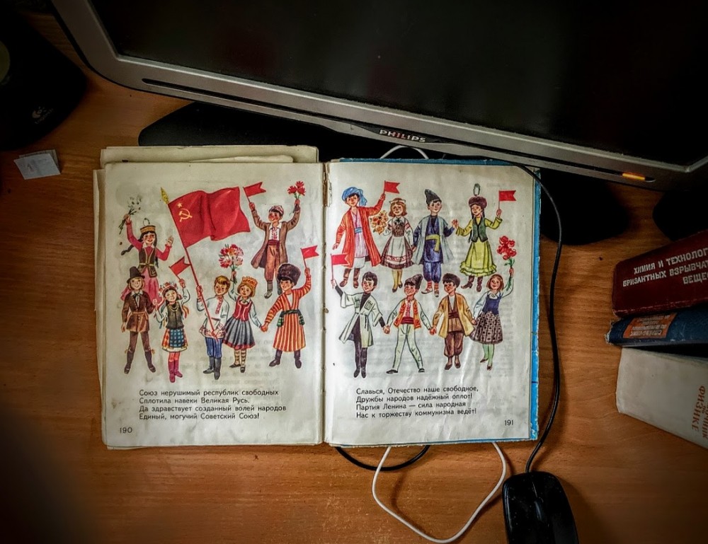 | Кот уронил полку с книжками, поверх бардака лежал раскрытый учебник... Вот, не потрудился посмотреть, за какой год, когда выбрасывал. Почему-то кольнуло, когда прочёл ,,сплотила навеки,,... Для того, чтоб каждая падаль потом чего-то требовала и измывалась...