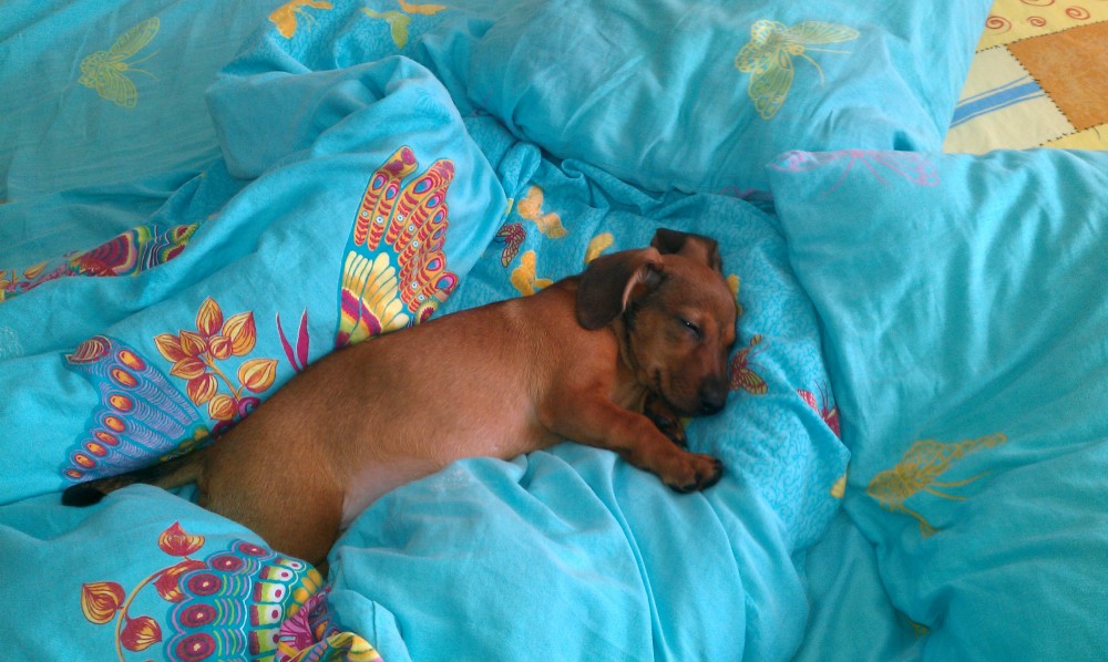 такого поискать нужно. ничего не рвёт . не роет. Спит только в кровати.... -) Мелкий совсем.... у меня ещё такса девочка есть- стандарт. Лучше таксы могут быть только ДВЕ таксы!!!!! на фотке она- щеночком. |