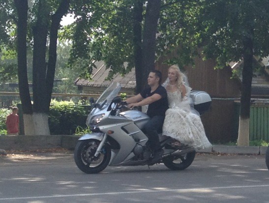 Говорят вчера знатная свадьба была в Богородске: около 20 мотоциклов, на одном из них невеста.