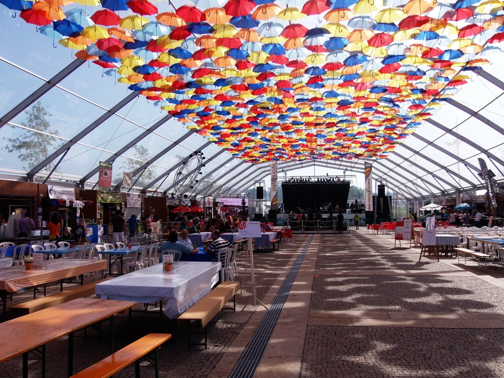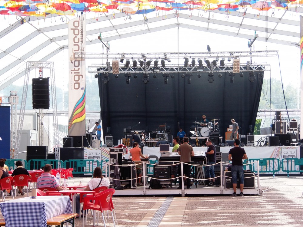 Павильон этот собрали незадолго, на случай дождя, сцену каждый год собирают, тут, и пляши, и музыку слушай, и пиво дуй сколько влезет, а кому, если покрепче чего, хоть ужрись. Перекусить тоже можно, и вполне прилично. Но как ни странно, не валяется никто и никогда, морды, может и бьют, но за более 12-ти лет жизни здесь, не видел ни разу.