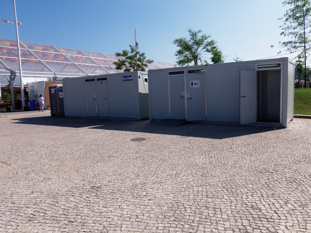 С туалетами полный порядок, таких вагончиков в округе десятка полтора насчитал. Никакие не игрушечные биотуалеты, настоящие, так сказать, со всеми удобствами, вода и канализация предусмотрена заблаговременно и подключается почти стационарно. После праздников всё уберут до следующего года.