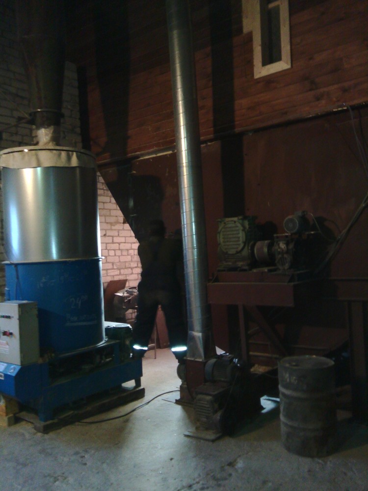 | Похвастаюсь своим друганом. В разваливающейся от времени пристройке, оставшейся от покинувших городок советских войск, из свезённого на свалку пресса и бункера для зерна соорудил он машину для изготовления топливных "таблеток" из опилок, которыми завалены все лесопилки. Теперь круглосуточно в автоматическом режиме "мусор" превращается в высоколиквидное топливо.
