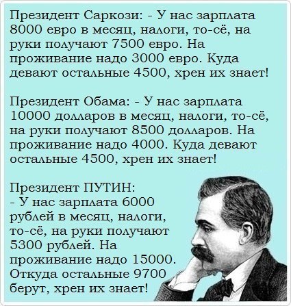 | Arsik написал: Сложно сравнивать вольные хлеба молодого специалиста нашей Россеюшки и за бугром. Там студент за лето может заработать, чтоб оплатить свою учёбу за год в престижном университете. А у нас специалистам, закончившим вышку, предлагают копейки, на которые только ноги протянуть... Если ты здоров, и немного можешь думать, то заработать вполне можно. То, что вы написали, это отмазки тех, кому лениво. В институте училась на 2 высших параллельно, второе оплачивала сама. Работала официанткой на ночной дискотеке, получала в несколько раз больше родителей. Правда было тяжело, приходилось иногда по двое суток не спать. Зато и учебу оплачивала и ни в чем себе не отказывала. Квартиру купила и расплачивалась - с грудным ребенком на руках, никто финансово не помогал, от алиментов отказалась. Главное - захотеть. Но вот если ты болен или на пенсии, тут в нашей стране безнадега полная. Ты нужен пока здоров и соображаешь и платишь налоги. А потом - как хочешь. |