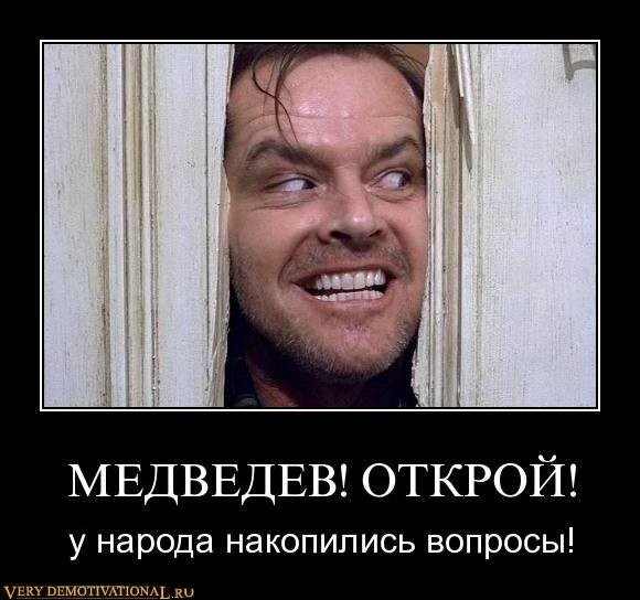 Основные тезисы: 1. Вопрос.., это большой вопрос.. Вас волнуют одни вопросы, власть придержащих иные.., на те, которые волнуют вас, вам отвечать никто не станет, поскольку они волнуют лишь вас и никого более, да и задать вам их никто не позволит, ибо можно поставить в неудобное положение г-на Медведева, кем бы он там ни был.. 2. У вас проблемы?? Если вы не в состоянии их решить сами, вряд ли кого-то ещё это заинтересует, хотя бы из тех, кто, впринципе, эти проблемы разрешить способен.. Только не надо мне говорить, что об этих проблемах не знают, это не соответствует действительности, о них знают.., давно.., все.., только вся проблема в том, что это ваша проблема, а не тех, кто.... 3. Издеваются, глумятся.. Закономерно.., в недавнем прошлом я поступил бы совершенно так же, ибо бесперспективно и вообще импосебл, а что остаётся?? Совершенно верно)) 4. Комплекс Бога у кого-то?? Вы не одиноки, я тоже Властелин и Генсек, знаем, проходили, только мне и в голову не приходило когда-либо претить моим оппонентам свободно выражать своё мнение и праведное негодование, на то право имеют.. 5. Ссориться ни с кем не хочу и не стану, тем более, что и повода соотвествующего не нахожу.., Путин, Медведев.., они сами по себе, а мы.., нам надо вместе держаться.. ----------