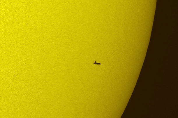 | А вот, кстати, шаттл "Атлантис" пролетает по диску одной из таких "звёздочек", в миссию для починки телескопа Hubble (последний ремонт телескопа астронавты Джон Грюнсфелд и Эндрю Фьюстел провели за 7 часов 20 минут). Фотка сделана французским астрономом Тьерри Лего 13 мая 2009 г. Прохождение челнока по диску Солнца заняло 0,8 секунды. Терри для съёмки использовал Canon 5D Mark II. Наблюдал на, относительно любительском(я, конечно, в телескопах не силён, может кому и профессиональным покажется