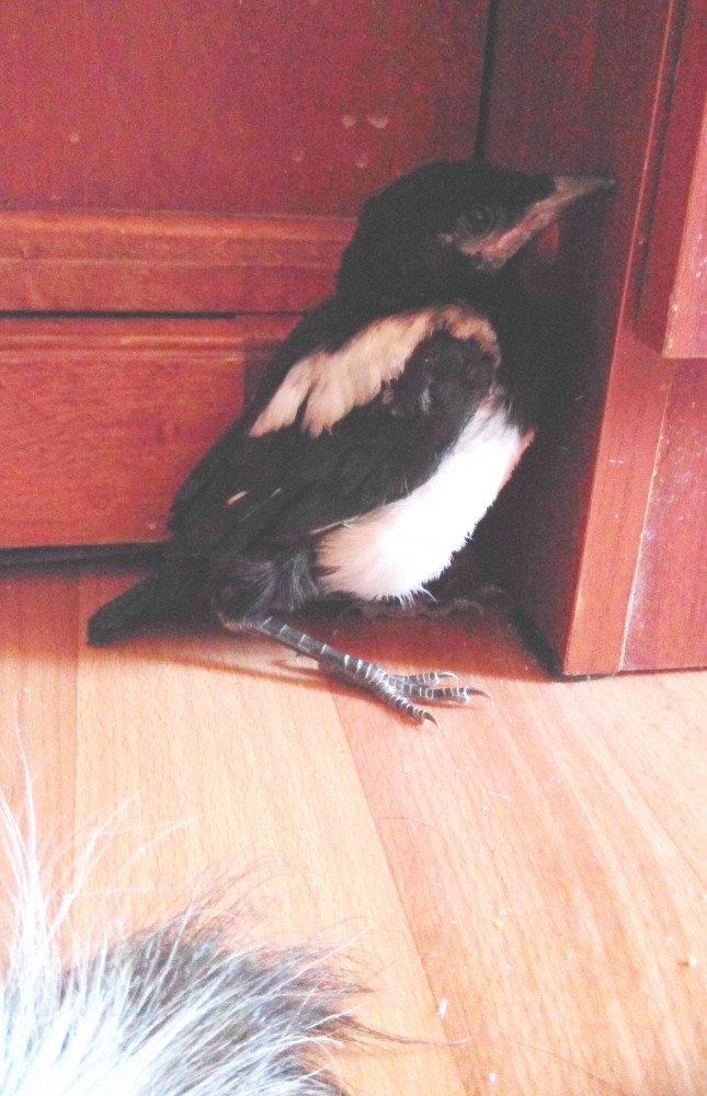 | Жасминка написал: Нашли лестницу, и усадили обратно в гнездо, Прям как моя матушка ))) Подобрала сорочёнка и заставила узбеков слазить на березу и вернуть птенца домой. Вот такой хулиган выпал из гнезда возле дома))) ----------