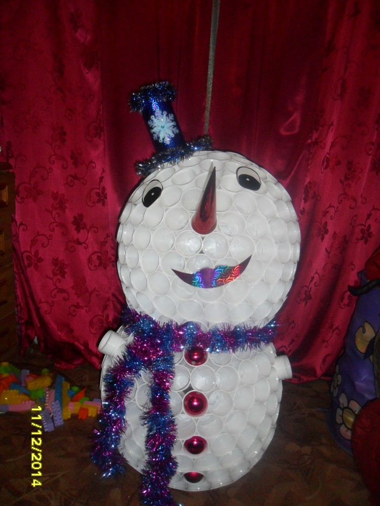| Мой малыш пошел в садик. Мы конечно же столкнулись, надо делать поделки. Дорогие молодые мамы, давайте делиться своими поделками. Предлагаю к Новому году СНЕГОВИКА.