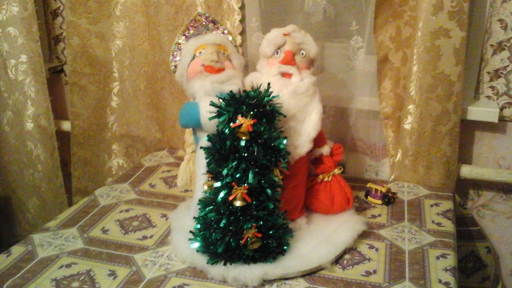 | А вот дед мороз с снегуркой также из капроновых чулков