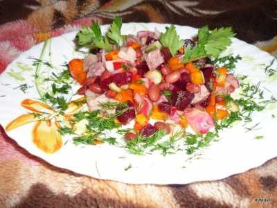 Можно сделать винегрет с мяском, я готовлю с говядиной (можно с любым), и заправить все это растительным маслом.