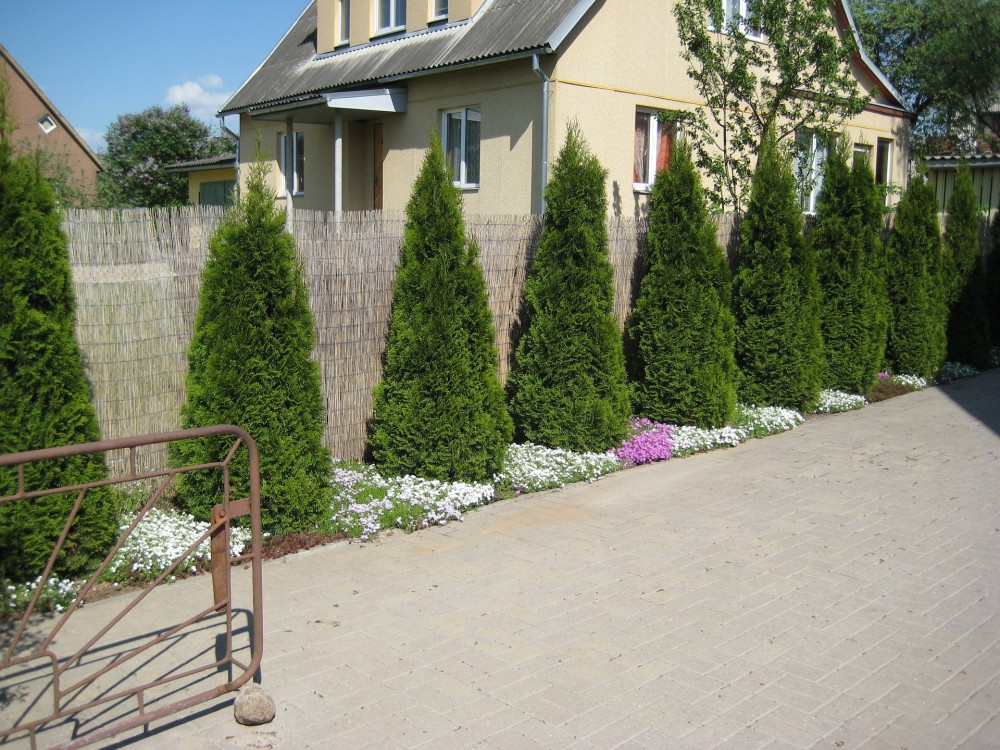| Вели кабель в этот дворик. Подсмотрел "дорожку" из туи и "плетень" между домами. Интересно смотрелся белый мох с какой-то красной травкой. Рассада туи высотой 0,8-1,2 метра стоит от 4,5 до 21 евро за дерево в зависимости от аппетитов продающего (просто, проехался по магазинам, чтобы посмотреть). Очень рекомендую для посадок.