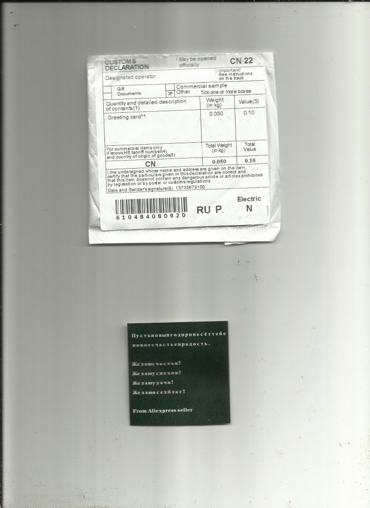 | пришла сегодня какая-то посылка , что это такое ? внутри маленькая бумажка и усё ! трека я не нашла - что бы сверить со своими настоящими заказами ( у меня 33 заказа в пути