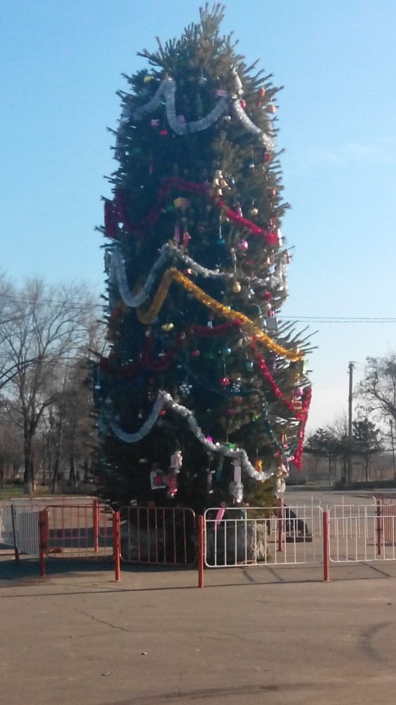 | У нас на городской площади поставили ёлку. Всё ничего...сначала поставили сам остов будущей елки. Нормальный такой...металлический, как и положено. Вот только ветки в этот остов воткнули живые, мохнатые, сосновые. Впервые вижу такую елку.