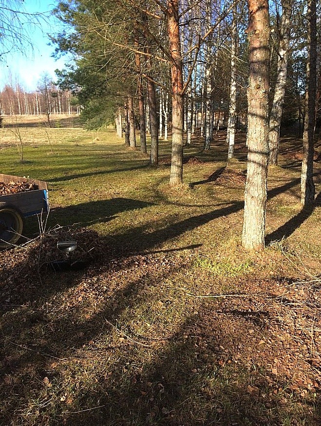 | Пользуясь тем, что снега нет и подсохло, завёл садовый тракторишко и помогаю молодёжи парк прибирать.