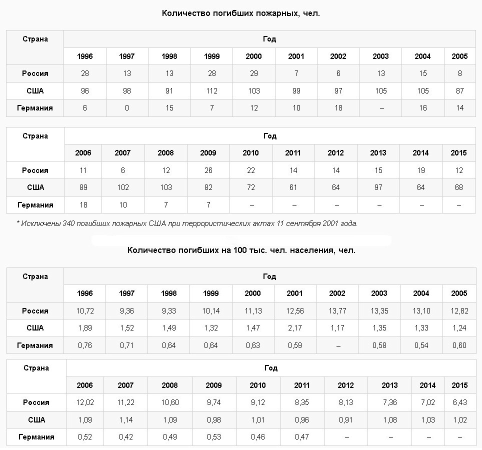Тут говорили еще про получение травм и несчастные случаи, что это явный признак непрофессионализма пожарных, в америке они наверно ведрами тушат, иначе как объяснить такую разницу в статистике по погибшим пожарным или они в первую очередь думают не о собственной безопасности, а о спасении людей? Не знаю..., но то что в Кемерово был шанс спасти погибших - это факт, когда прибыли пожарные дети были живы и говорили по телефону с родителями. |
