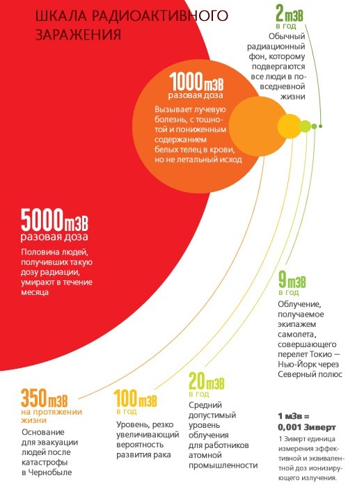 А на счет радиации это ты зря. Зиверт и Рентген вполне сравнимы (в идеале нужно умножать на 102). Раньше вообще считали именно в Рентгенах. Сейчас в новостях все в Зивертах приводят, т.е. в виде поглощенной дозы, это тем более яснее-ясного. О защитных материалах никто не говорит, когда угроза есть для обычных людей. О расстоянии нет смысла говорить, так как речь о том, что ты в конкретном месте получаешь определенную дозу, немного передвигаешься - ситуация не меняется. Время все указано, о чем тут говорить. Зачем рассматривать стохастические или детерминированные эффекты - совершенно не понятно. Твоя приведенная таблица совершенно совпадает с теми же значениями для Рентген (с умножением в 100 раз). |