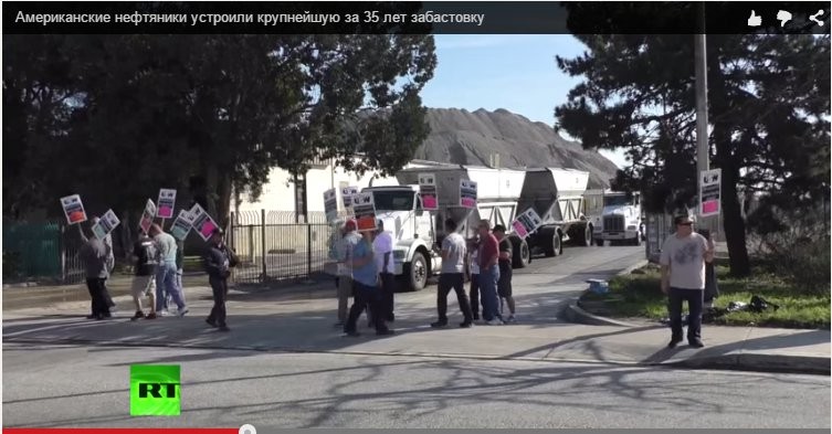 Между тем, экономика США на грани краха - крупнейшая забастовка нефтяников за 35 лет. Вот скрин репортажа нашего светлого "раша тудей"