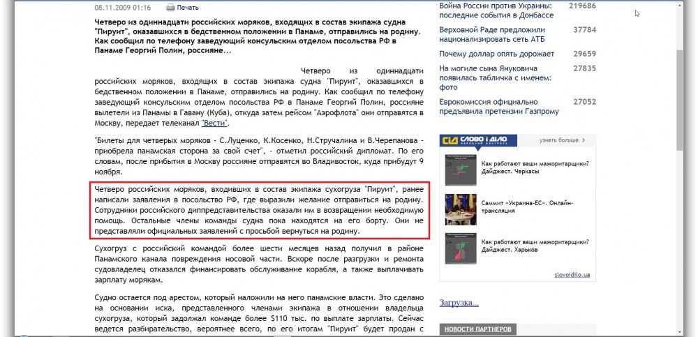 | viev это просто АТАС! вы про презумпцию невиновности слыхали? Есть такая бессердечная сука. Если пытаетесь кого-то и в чем-то обвинить - САМИ ищите и САМИ доказывайте вину! Докажите, что помощи морякам не было, приведите факты из других СМИ, найдите законы и тд. Покамест поверхностное изучение вопроса ваши доводы (названия судов) полностью опровергает. Так что на наймита и колонну не тянет, пока "балабол обыкновенный"