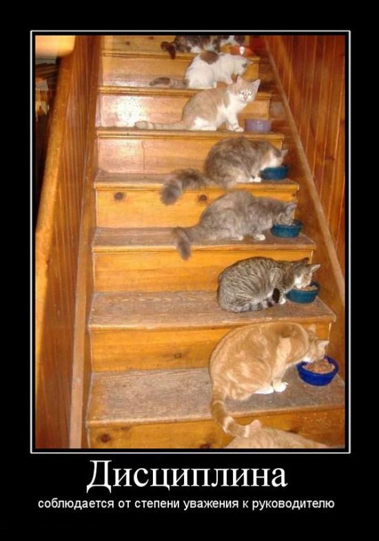| Откуда фотка в тырнете? Это моя лестница до ремонта и кошаки мои и соседа. Снизу вверх: Тимка, Бася, Маня, Мусёна, этого не помню, Валет, Симка. В кадре нет Малыша, Пуха, Шеллии, Ксюхи и Вари. Года три назад сфоткали. Правда, Симка и Бася пропали куда-то, скорей всего, их лисы сожрали.