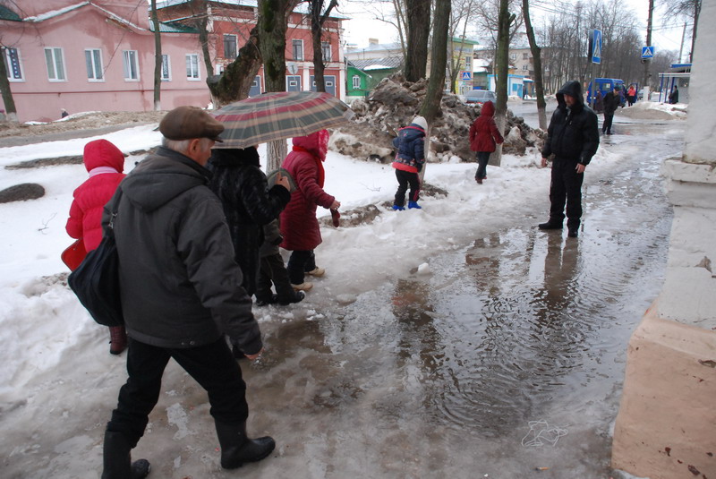 | Всегда радовали эти деревянные настилы, которые бултыхаются в луже. А слабо тротуар нормальный сделать, с дренажной системой, например?